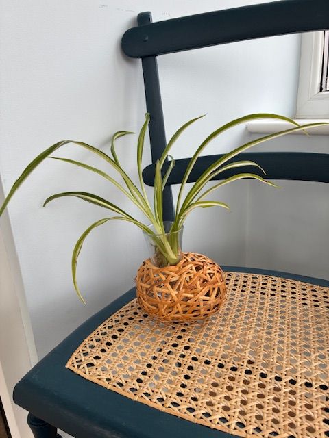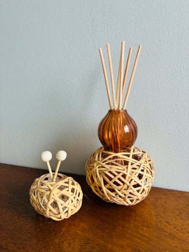 I created these small cane vases around a forma and then glass or ceramic vases or bottles are added so they can be used for plants, flowers or reed defusers. More to follow...